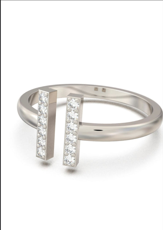 Double T Parallel Bar Minimalist Silver Ring