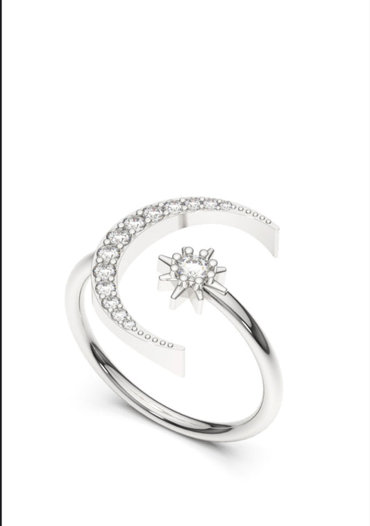 Sterling Silver Moon Star Ring