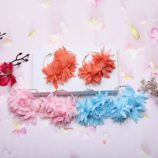 Buy 1 Gold Floral Design Earring & Get 2 Free(1 Dainty Dangler & 1 Fabric Leaf Earring)