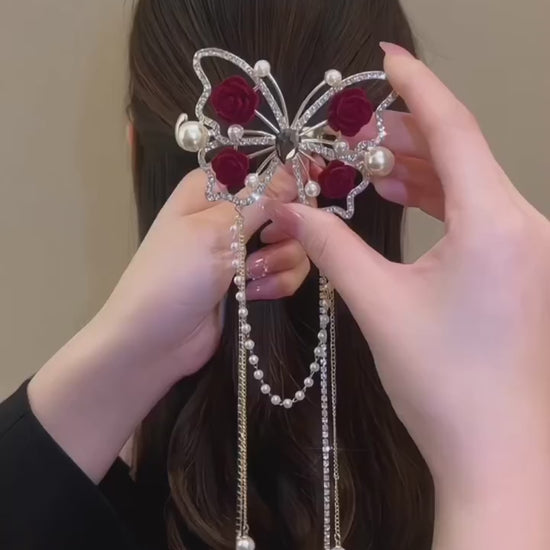 Embellished Rose Butterfly Hair Barrette