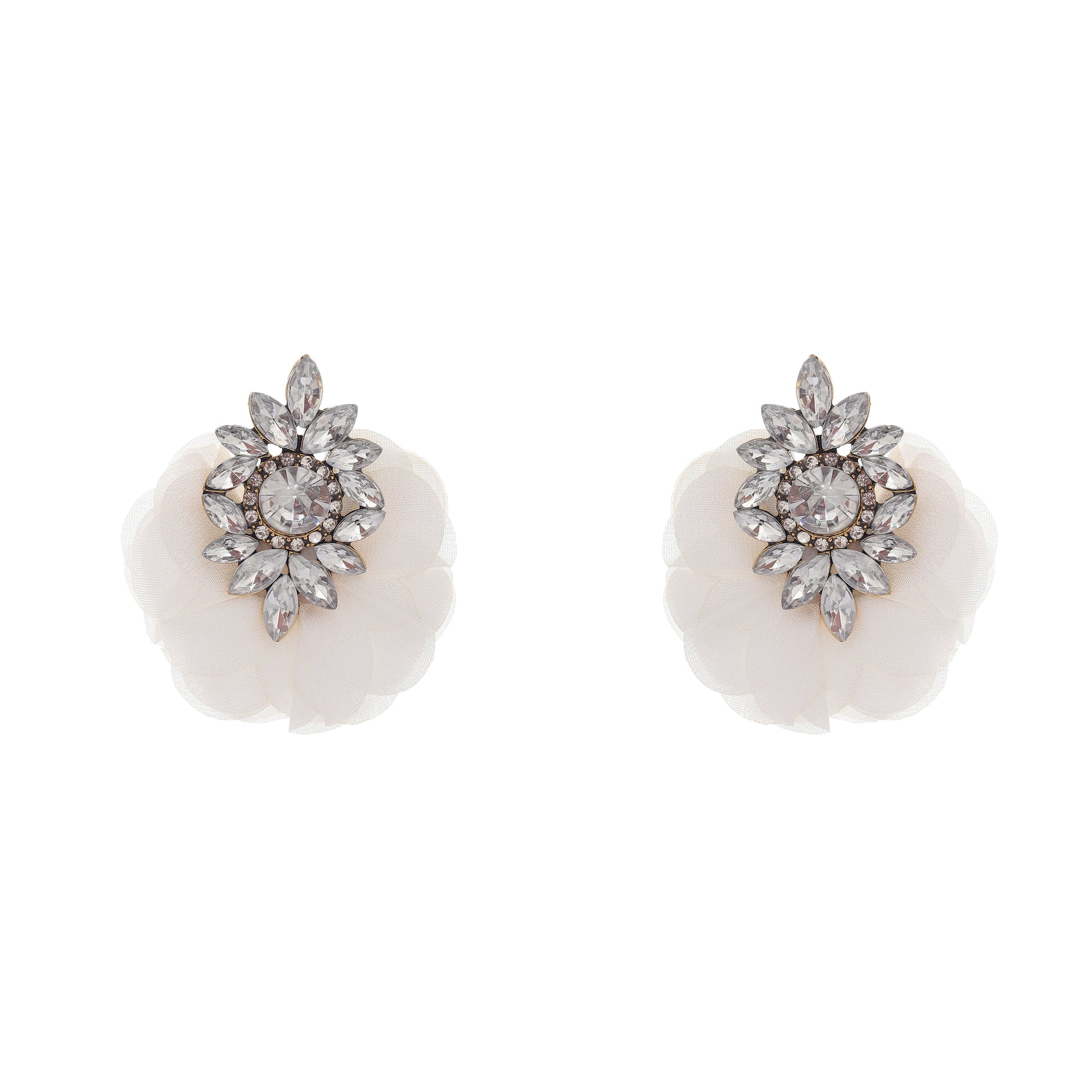 - Adorn yourself with our "Gemstone Petal Splendor Earrings" where exquisite gemstone designs grace delicate fabric flower petals, offering a harmonious blend of elegance and grace.