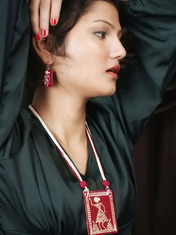 - Ā Hand Painted BeautifulĀ Jewellery set of Nacklace and a pair of matching Earrings