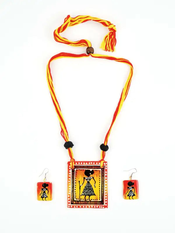 - Ā Hand painted BeautifulĀ Jewellery set of Nacklace and a pair of matching Earrings