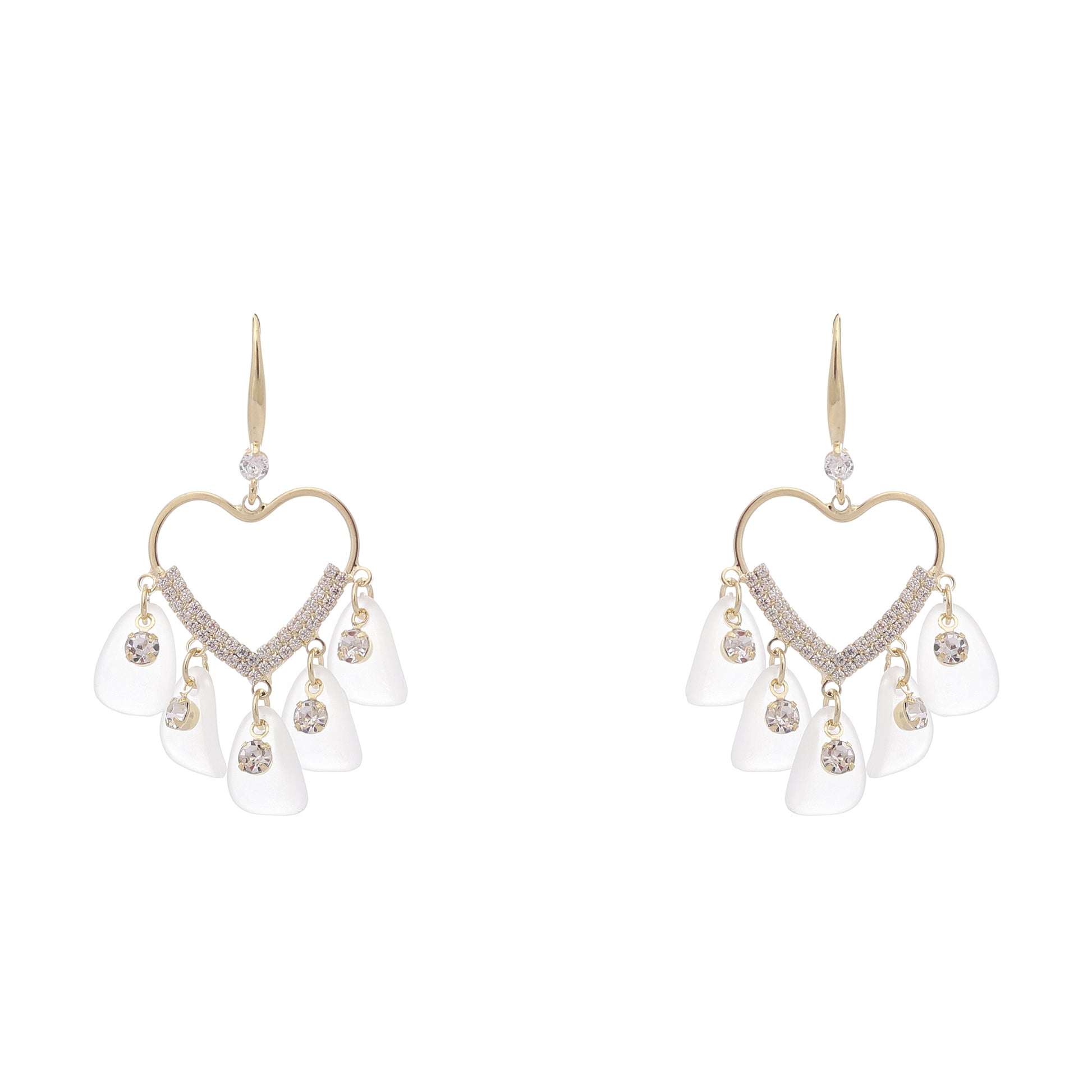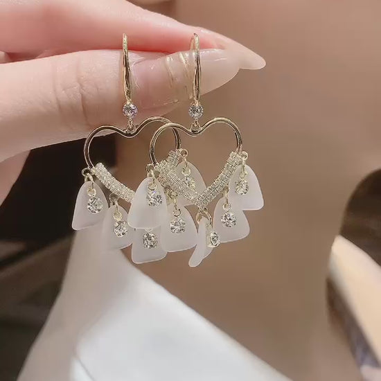 - Elevate your elegance with our radiant Rhinestone Heart Dangle Earrings, featuring sparkling rhinestones hearts with danglers that dances and shimmers with every move, adding a touch of glamour and romance to your look.