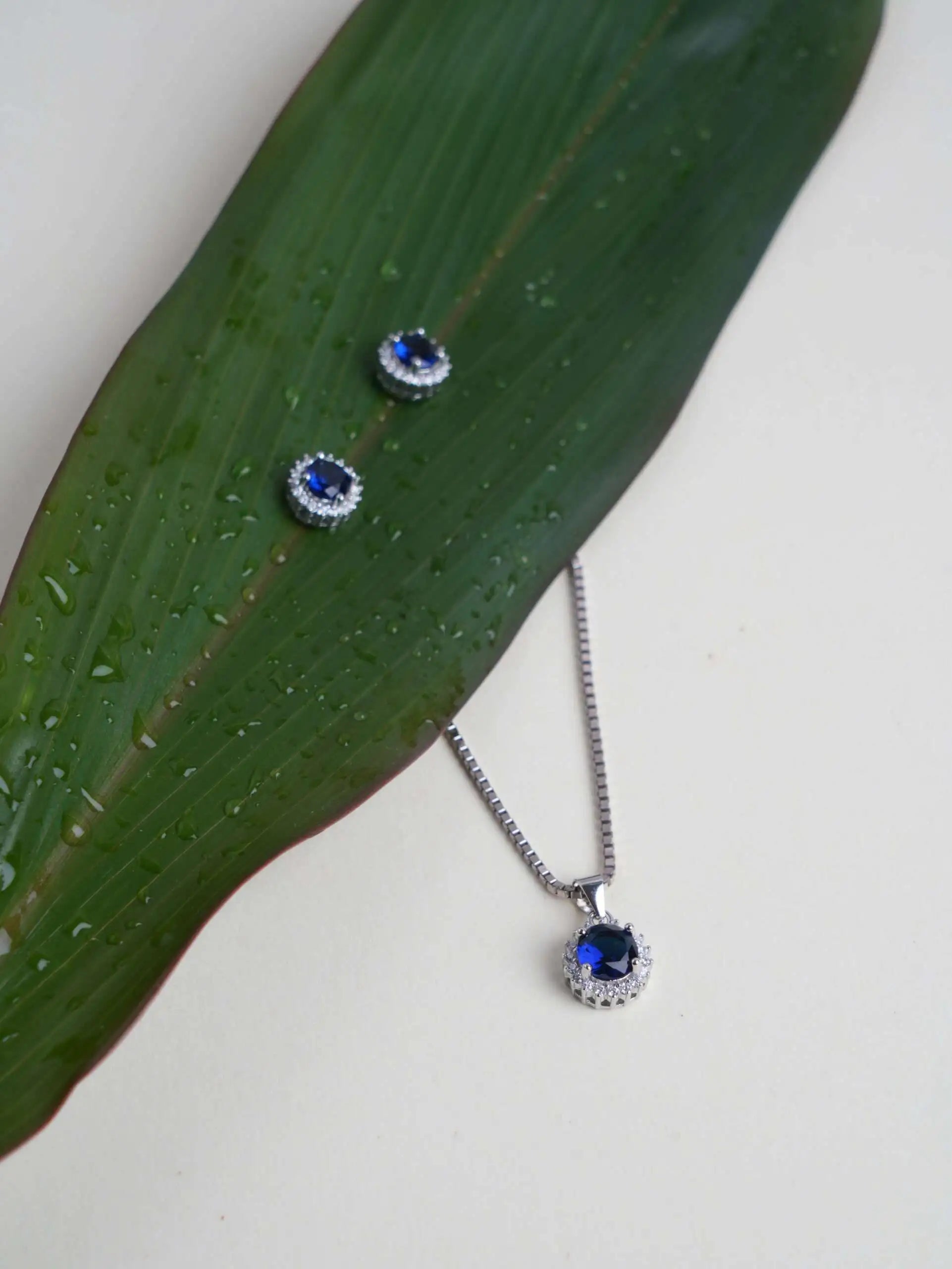 - 92.5 Sterling Silver Blue Stone Chain Pendant With Earrings , that bring sparkles to your beauty.