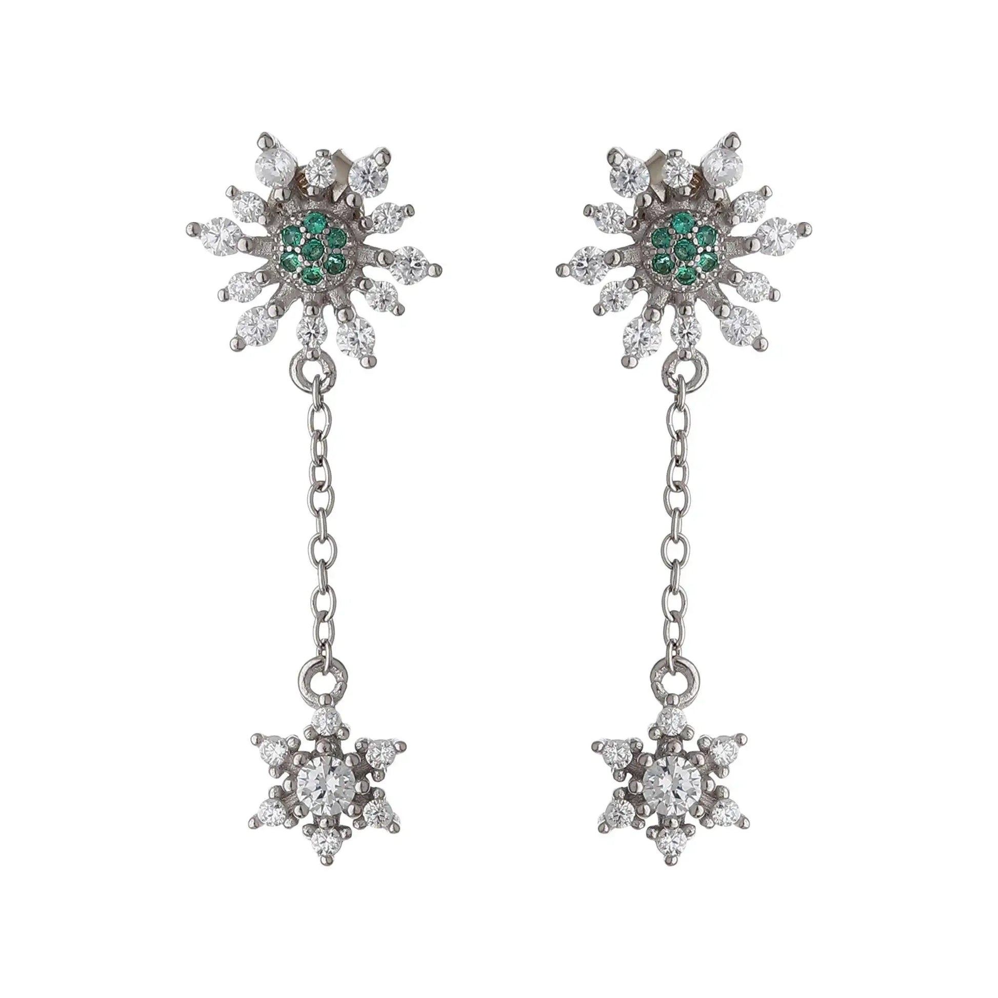 - These earrings are super unique with the zircon embellished flower hanging on the silver link chain. Minimalism coming to life right here.