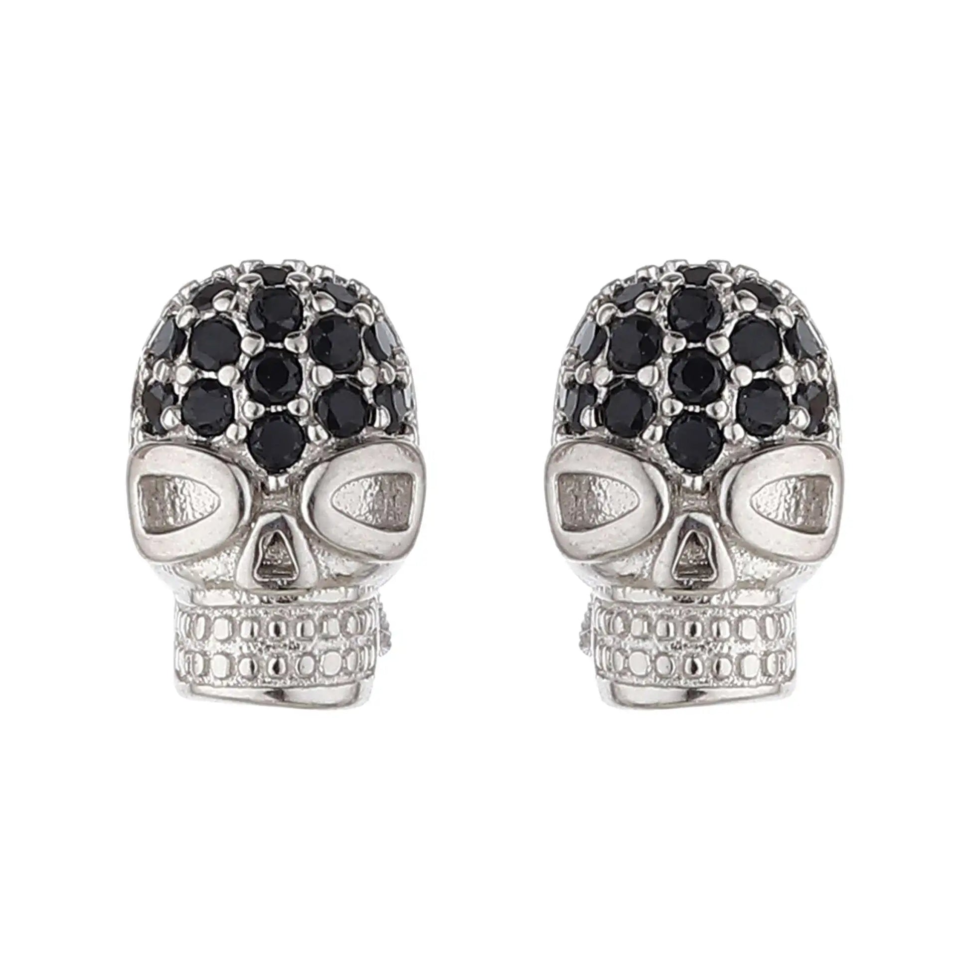 - These Earrings in Silver are our new favorite Statement piece. Sterling Silver Skull Embellished with Black Rhinestones, minimal, chic, and mischievous, these little studs are the perfect pair to elevate your look.