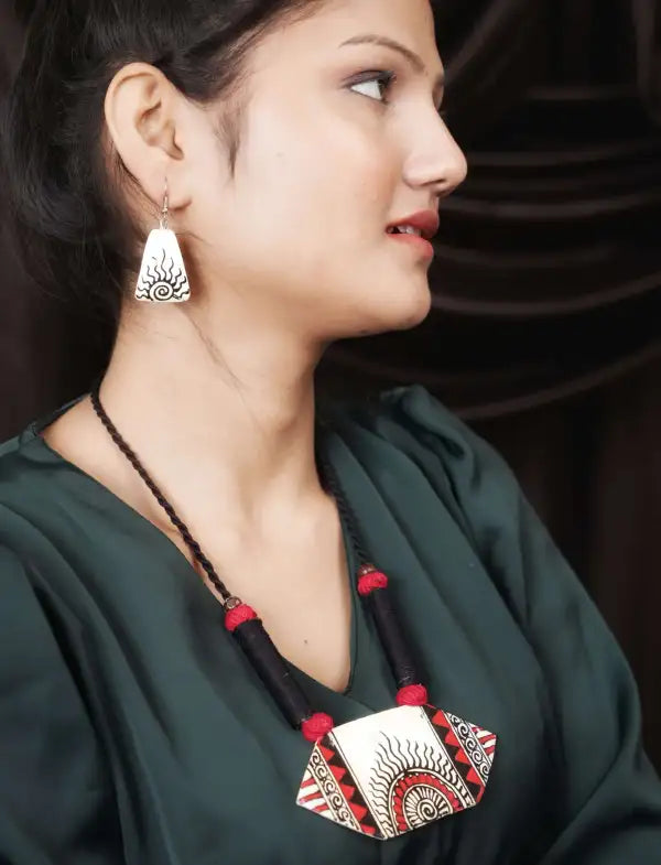 - Hand painted Beautiful Jewellery set of Nacklace and a pair of matching earrings